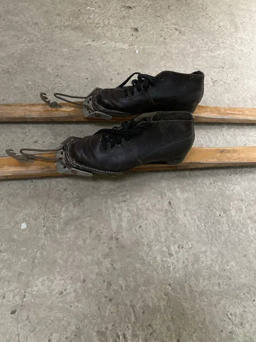Sci antichi in legno con le sue scarpe per sci d'epoca misura 39, con i suoi bastoncini. Spedizione 25 euro nord Italia. Vedi nelle mie inserzioni gli altri miei annunci.