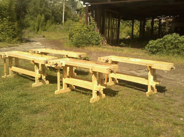 Banchi da falegname di tre misure fatti come cento anni fa , tutti a incastri facilmente smontabili, piano di lavoro in legno di rovere, porta attrezzi e struttura in abete, legno massello, Banchi da cm 161 di lunghezza sempre disponibili, altri da cm 180 e 200 o con morse in legno su ordinazione da aspettare 20 giorni.